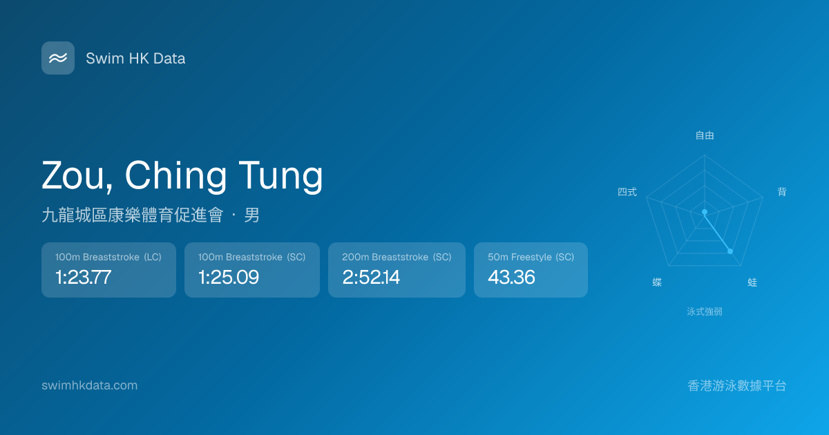此圖表根據你所有比賽成績計算,顯示你在各泳式的相對強弱,僅供參考。繼續努力,每一次練習都會讓你更快更強!💪