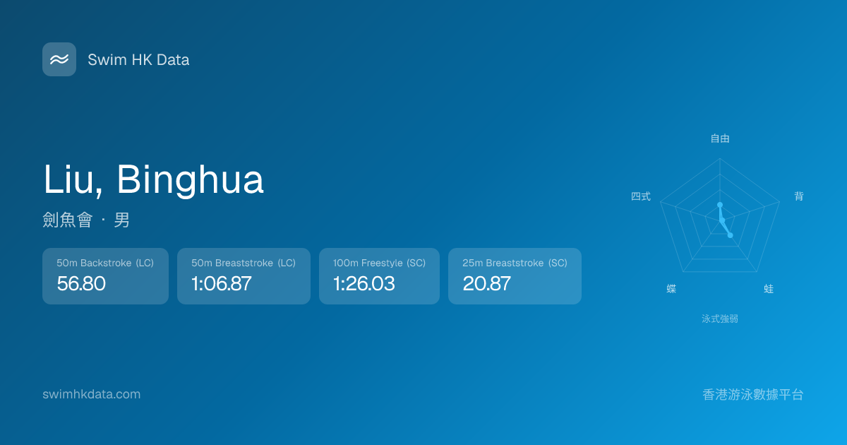 此圖表根據你所有比賽成績計算,顯示你在各泳式的相對強弱,僅供參考。繼續努力,每一次練習都會讓你更快更強!💪