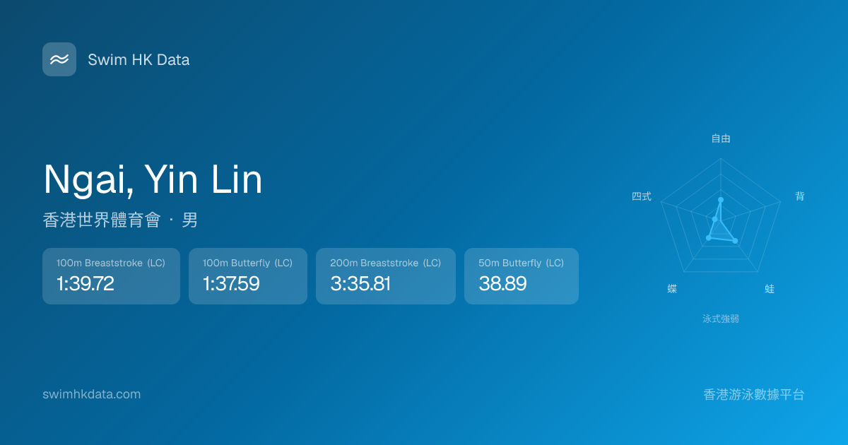 此圖表根據你所有比賽成績計算,顯示你在各泳式的相對強弱,僅供參考。繼續努力,每一次練習都會讓你更快更強!💪