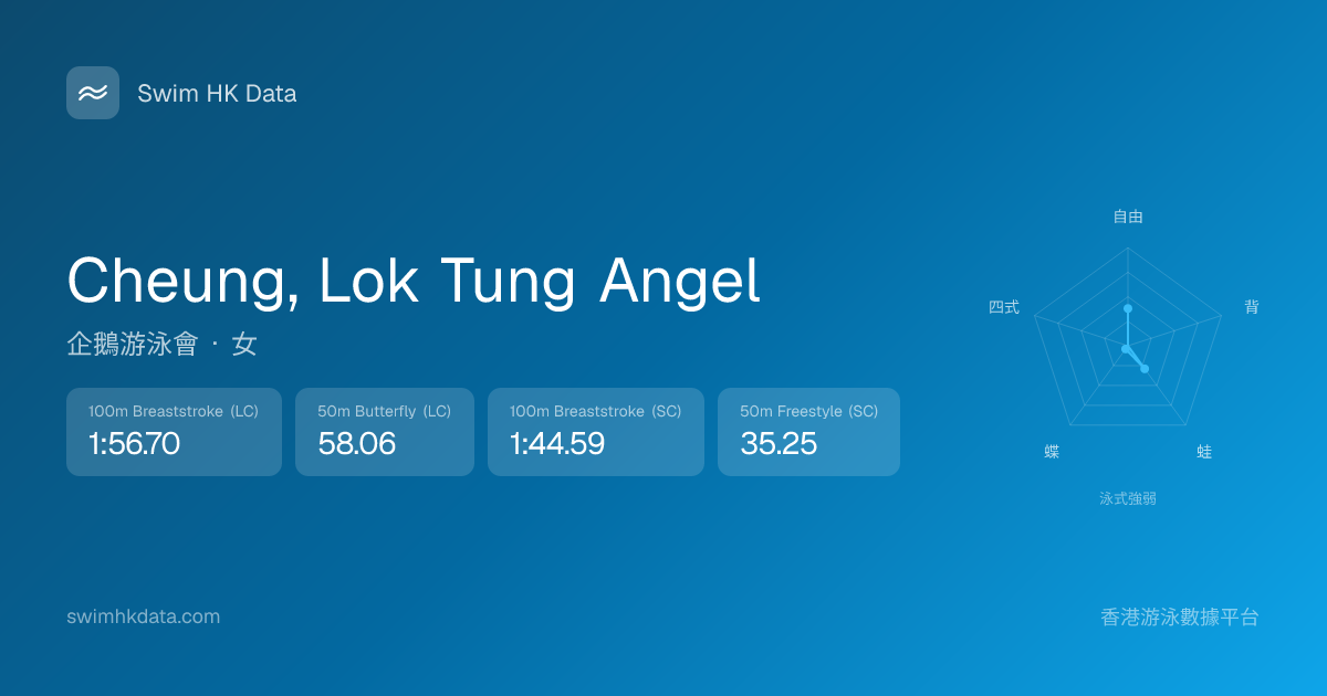 此圖表根據你所有比賽成績計算,顯示你在各泳式的相對強弱,僅供參考。繼續努力,每一次練習都會讓你更快更強!💪