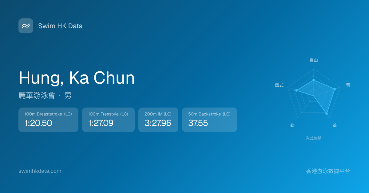此圖表根據你所有比賽成績計算,顯示你在各泳式的相對強弱,僅供參考。繼續努力,每一次練習都會讓你更快更強!💪