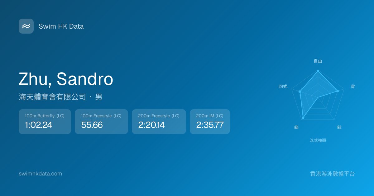 此圖表根據你所有比賽成績計算,顯示你在各泳式的相對強弱,僅供參考。繼續努力,每一次練習都會讓你更快更強!💪