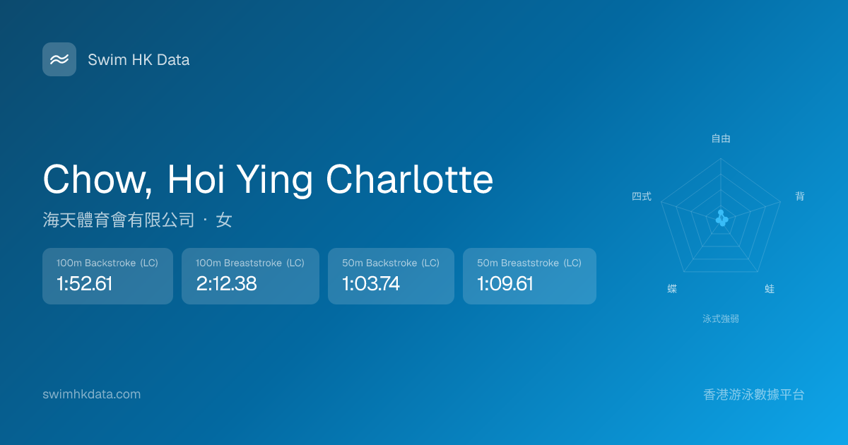 此圖表根據你所有比賽成績計算,顯示你在各泳式的相對強弱,僅供參考。繼續努力,每一次練習都會讓你更快更強!💪
