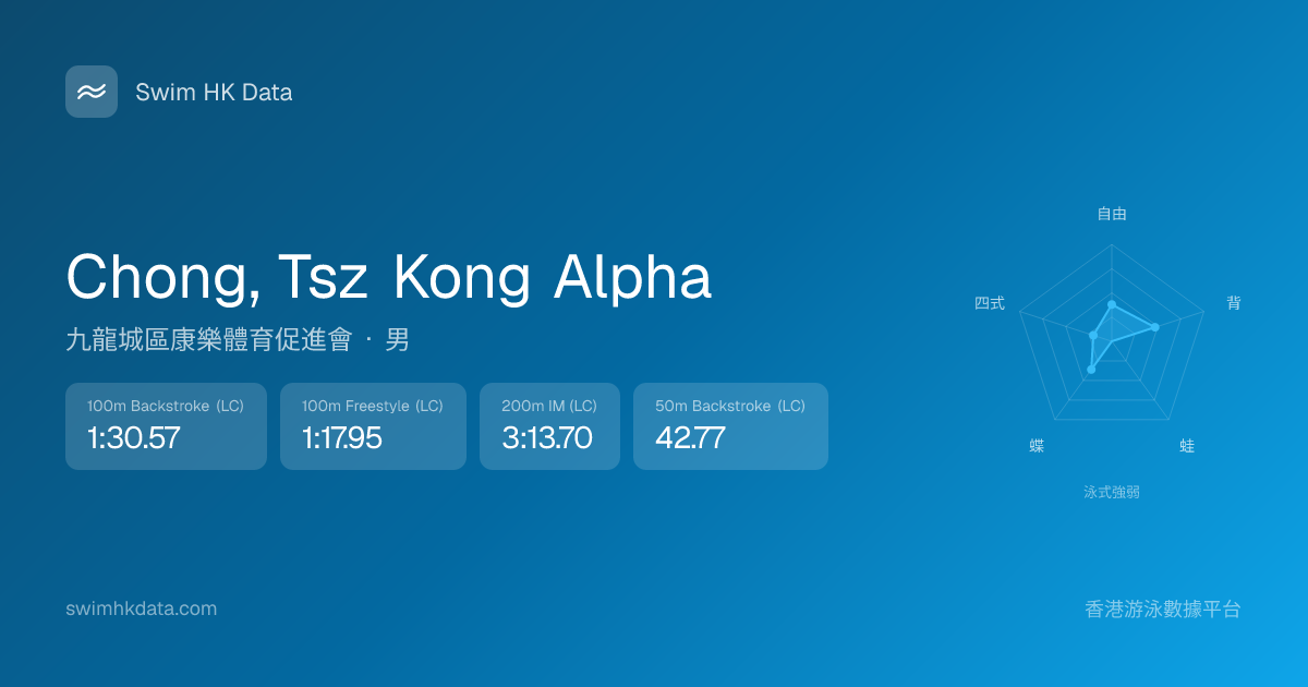 此圖表根據你所有比賽成績計算,顯示你在各泳式的相對強弱,僅供參考。繼續努力,每一次練習都會讓你更快更強!💪