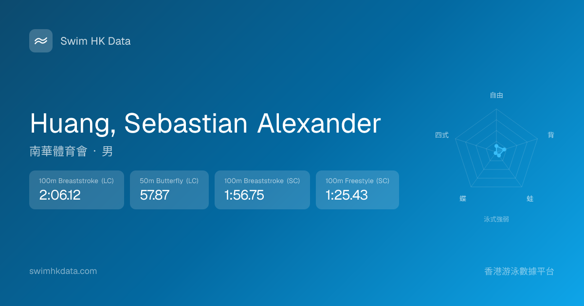 此圖表根據你所有比賽成績計算,顯示你在各泳式的相對強弱,僅供參考。繼續努力,每一次練習都會讓你更快更強!💪