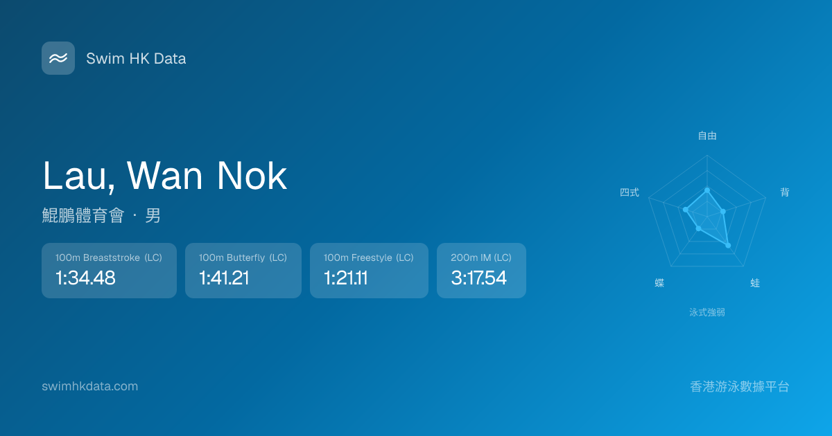 此圖表根據你所有比賽成績計算,顯示你在各泳式的相對強弱,僅供參考。繼續努力,每一次練習都會讓你更快更強!💪