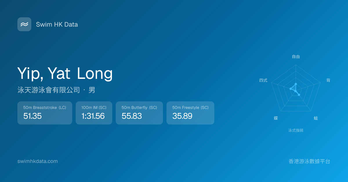 此圖表根據你所有比賽成績計算,顯示你在各泳式的相對強弱,僅供參考。繼續努力,每一次練習都會讓你更快更強!💪