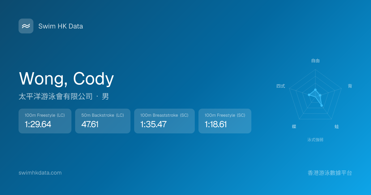 此圖表根據你所有比賽成績計算,顯示你在各泳式的相對強弱,僅供參考。繼續努力,每一次練習都會讓你更快更強!💪