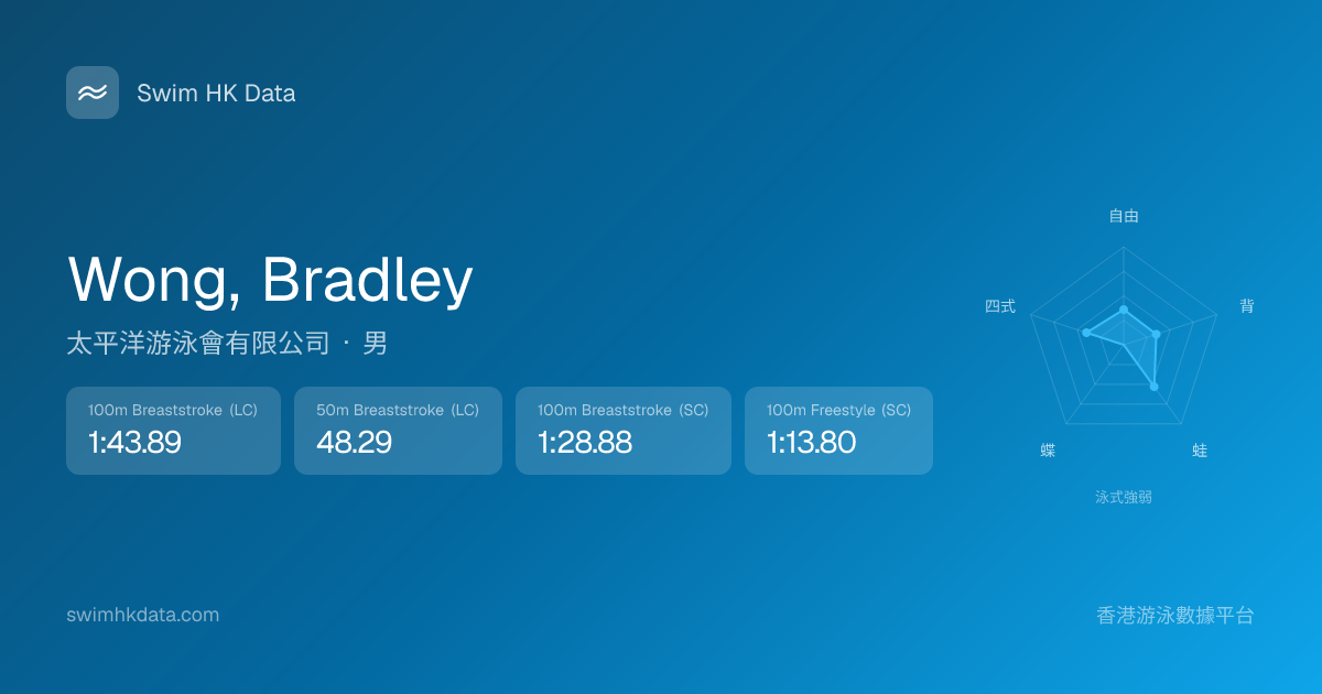 此圖表根據你所有比賽成績計算,顯示你在各泳式的相對強弱,僅供參考。繼續努力,每一次練習都會讓你更快更強!💪