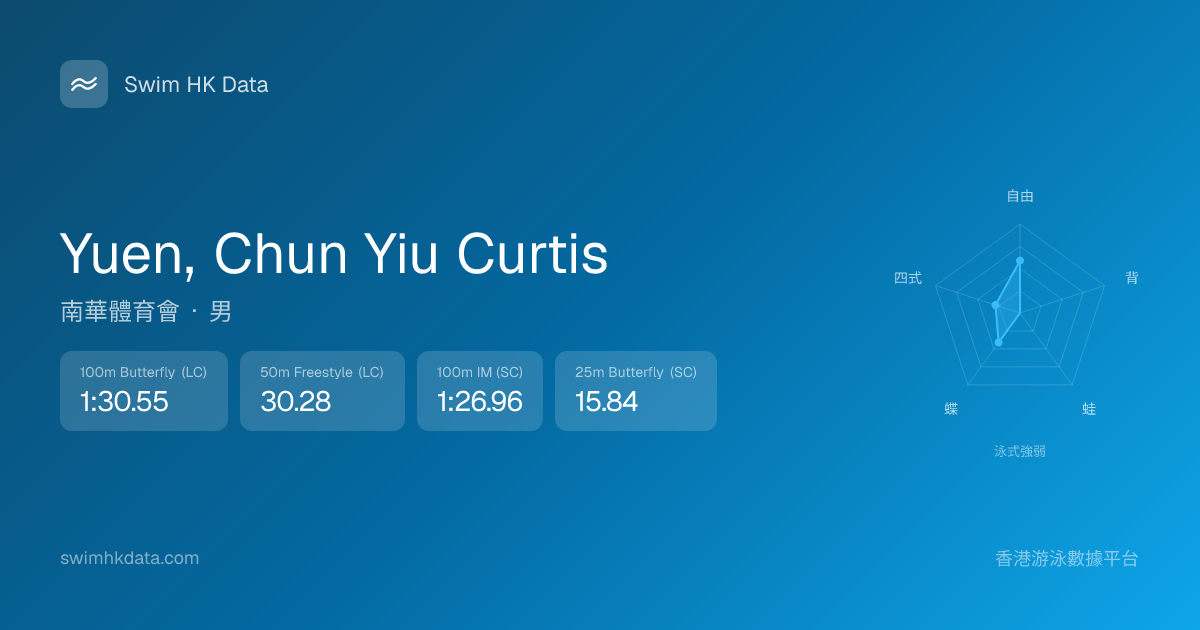 此圖表根據你所有比賽成績計算,顯示你在各泳式的相對強弱,僅供參考。繼續努力,每一次練習都會讓你更快更強!💪