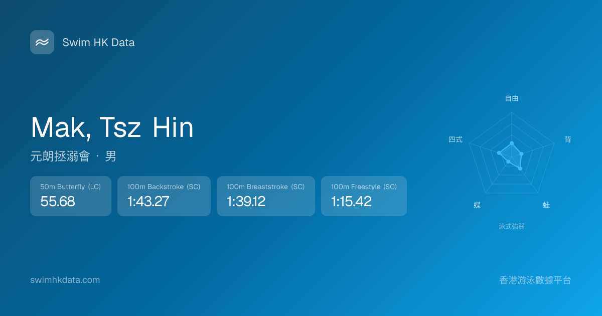 此圖表根據你所有比賽成績計算,顯示你在各泳式的相對強弱,僅供參考。繼續努力,每一次練習都會讓你更快更強!💪