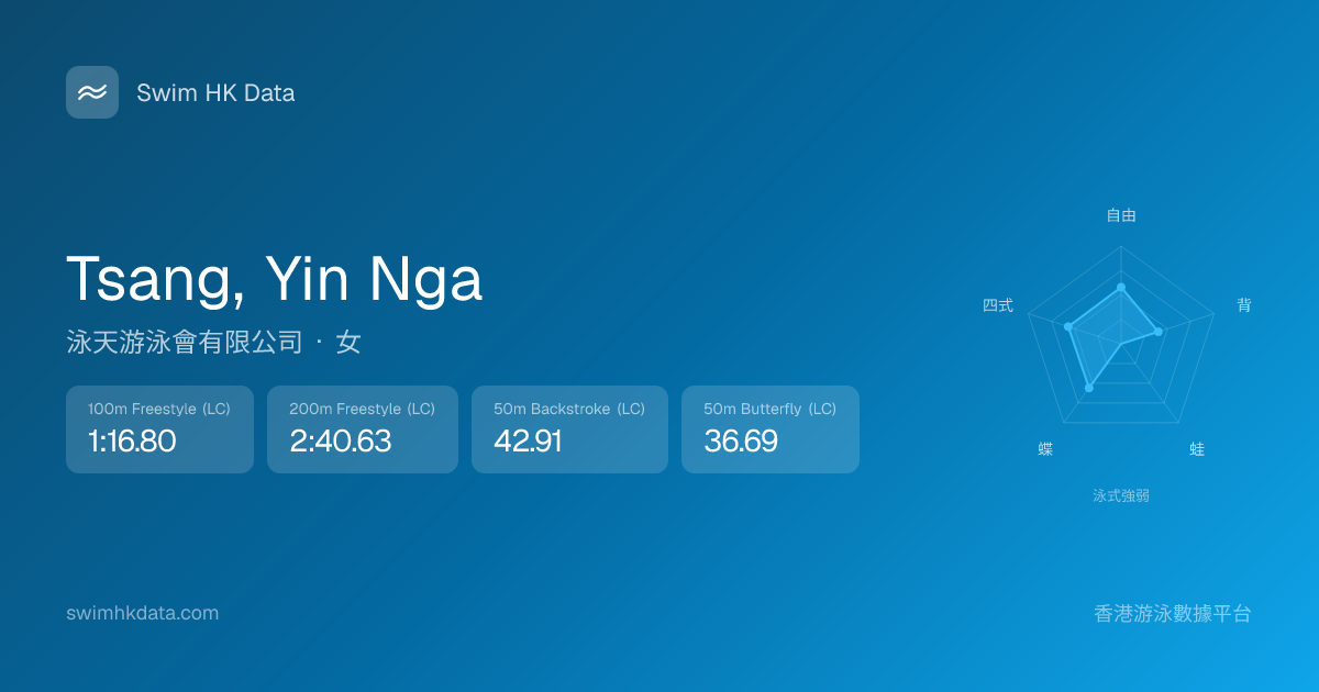 此圖表根據你所有比賽成績計算,顯示你在各泳式的相對強弱,僅供參考。繼續努力,每一次練習都會讓你更快更強!💪