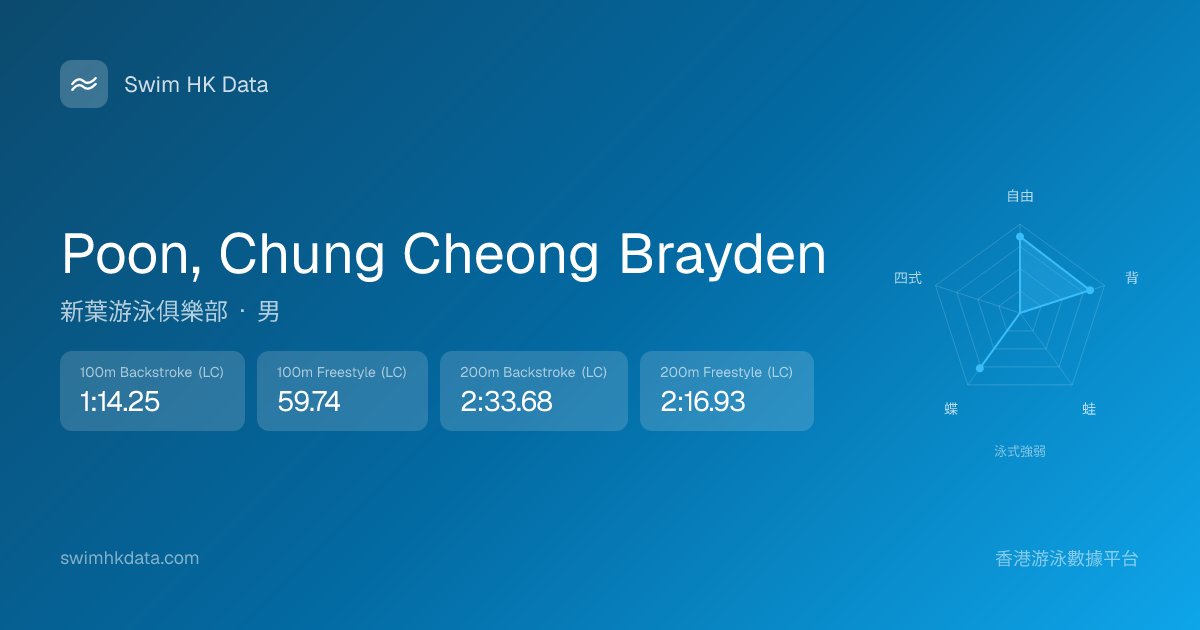 此圖表根據你所有比賽成績計算,顯示你在各泳式的相對強弱,僅供參考。繼續努力,每一次練習都會讓你更快更強!💪