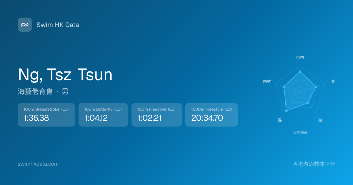 此圖表根據你所有比賽成績計算,顯示你在各泳式的相對強弱,僅供參考。繼續努力,每一次練習都會讓你更快更強!💪