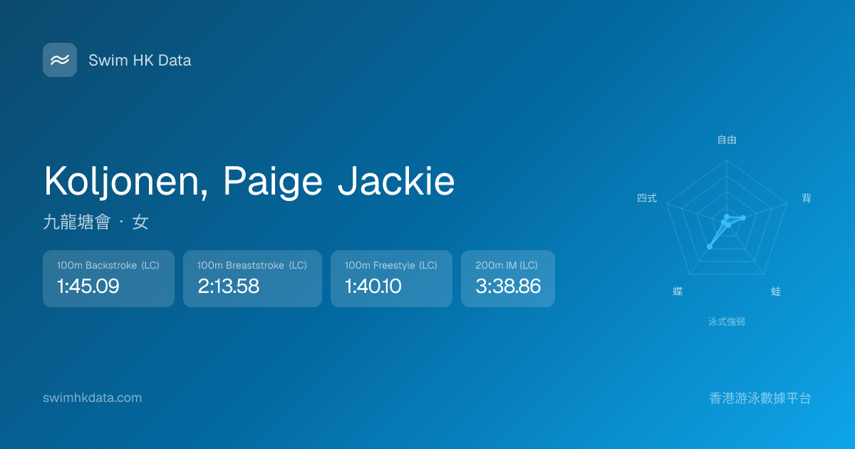 此圖表根據你所有比賽成績計算,顯示你在各泳式的相對強弱,僅供參考。繼續努力,每一次練習都會讓你更快更強!💪