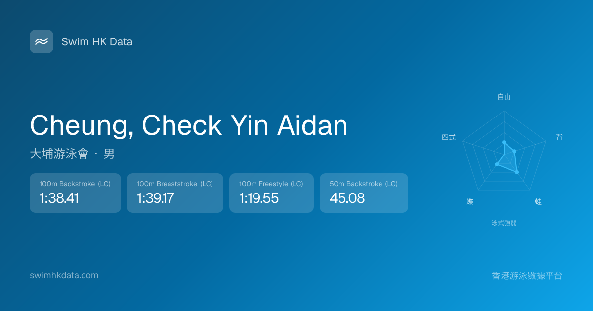 此圖表根據你所有比賽成績計算,顯示你在各泳式的相對強弱,僅供參考。繼續努力,每一次練習都會讓你更快更強!💪