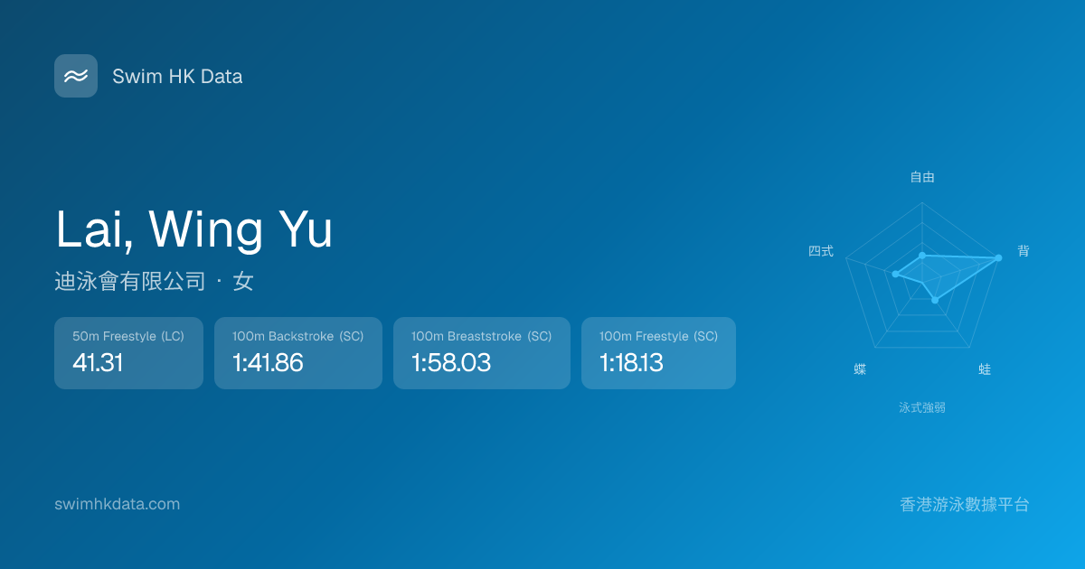 此圖表根據你所有比賽成績計算,顯示你在各泳式的相對強弱,僅供參考。繼續努力,每一次練習都會讓你更快更強!💪