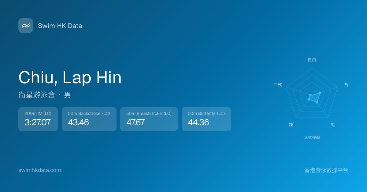 此圖表根據你所有比賽成績計算,顯示你在各泳式的相對強弱,僅供參考。繼續努力,每一次練習都會讓你更快更強!💪