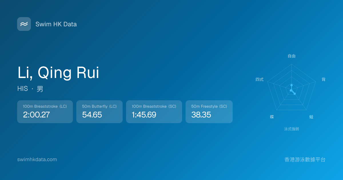此圖表根據你所有比賽成績計算,顯示你在各泳式的相對強弱,僅供參考。繼續努力,每一次練習都會讓你更快更強!💪