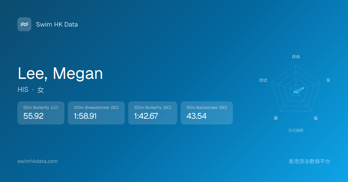 此圖表根據你所有比賽成績計算,顯示你在各泳式的相對強弱,僅供參考。繼續努力,每一次練習都會讓你更快更強!💪