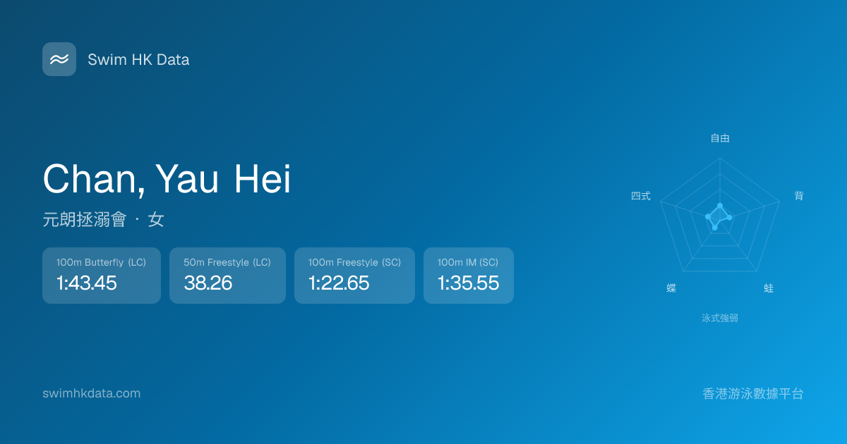 此圖表根據你所有比賽成績計算,顯示你在各泳式的相對強弱,僅供參考。繼續努力,每一次練習都會讓你更快更強!💪