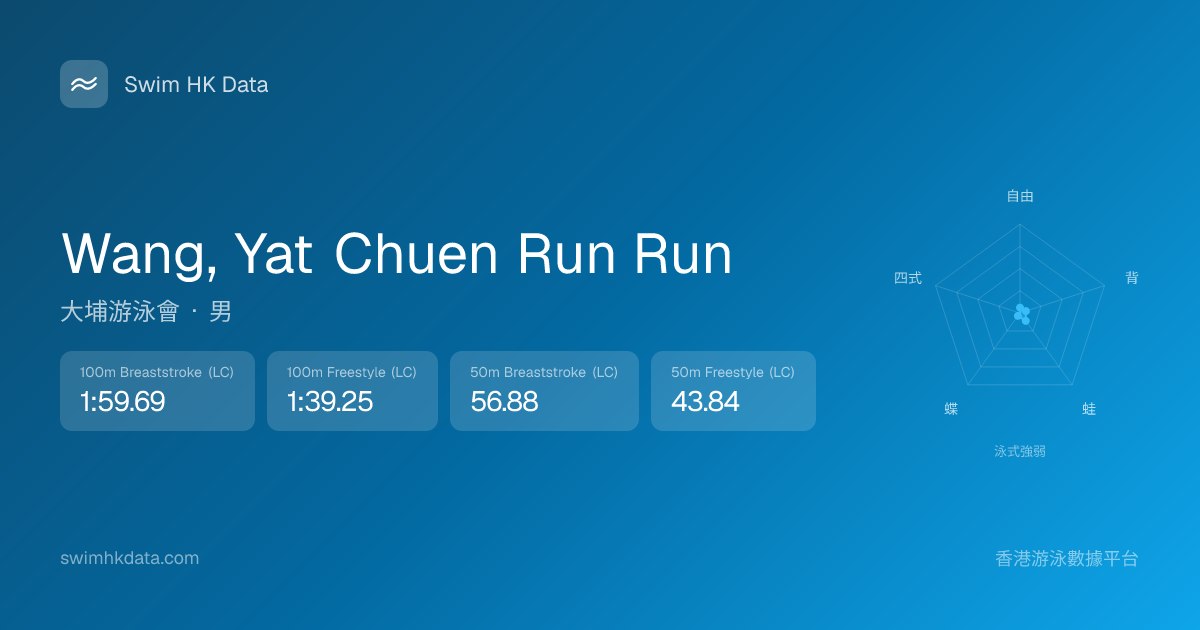 此圖表根據你所有比賽成績計算,顯示你在各泳式的相對強弱,僅供參考。繼續努力,每一次練習都會讓你更快更強!💪