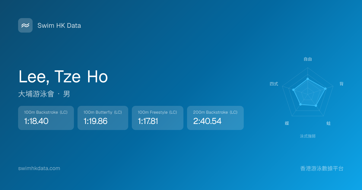 此圖表根據你所有比賽成績計算,顯示你在各泳式的相對強弱,僅供參考。繼續努力,每一次練習都會讓你更快更強!💪