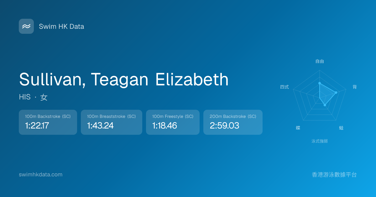此圖表根據你所有比賽成績計算,顯示你在各泳式的相對強弱,僅供參考。繼續努力,每一次練習都會讓你更快更強!💪