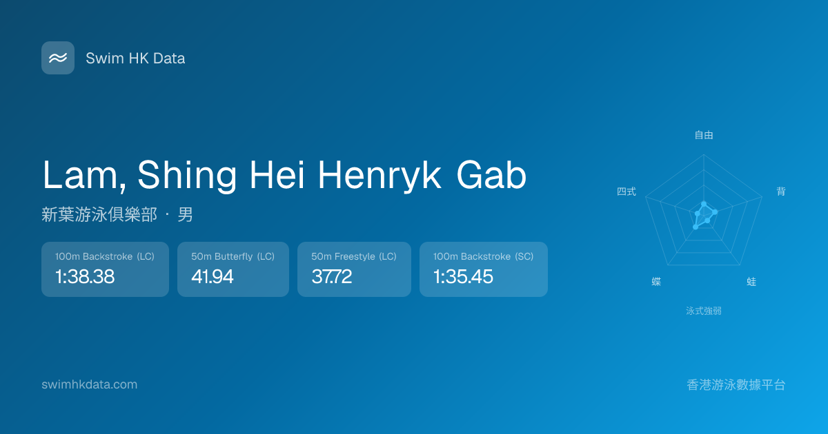 此圖表根據你所有比賽成績計算,顯示你在各泳式的相對強弱,僅供參考。繼續努力,每一次練習都會讓你更快更強!💪
