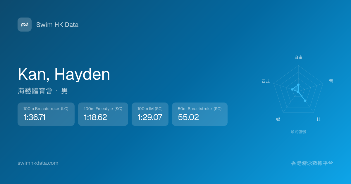 此圖表根據你所有比賽成績計算,顯示你在各泳式的相對強弱,僅供參考。繼續努力,每一次練習都會讓你更快更強!💪