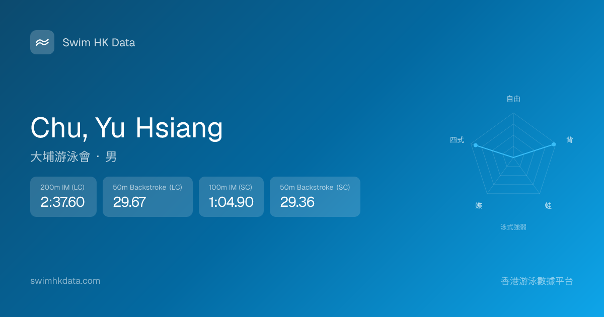 此圖表根據你所有比賽成績計算,顯示你在各泳式的相對強弱,僅供參考。繼續努力,每一次練習都會讓你更快更強!💪