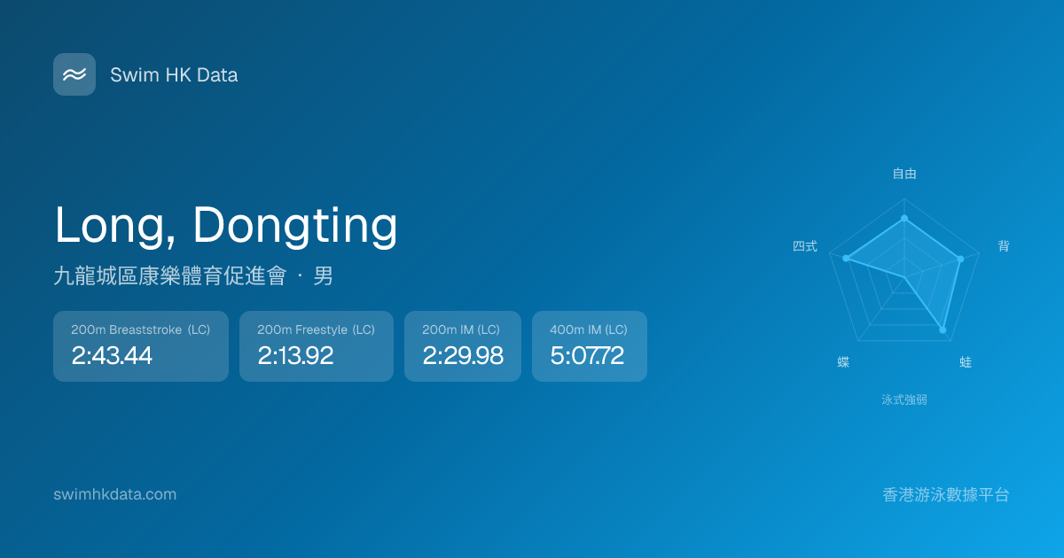 此圖表根據你所有比賽成績計算,顯示你在各泳式的相對強弱,僅供參考。繼續努力,每一次練習都會讓你更快更強!💪