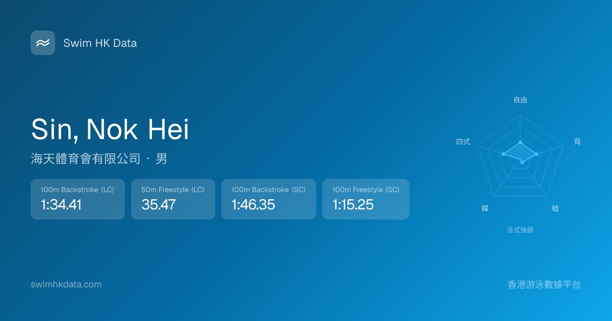 此圖表根據你所有比賽成績計算,顯示你在各泳式的相對強弱,僅供參考。繼續努力,每一次練習都會讓你更快更強!💪