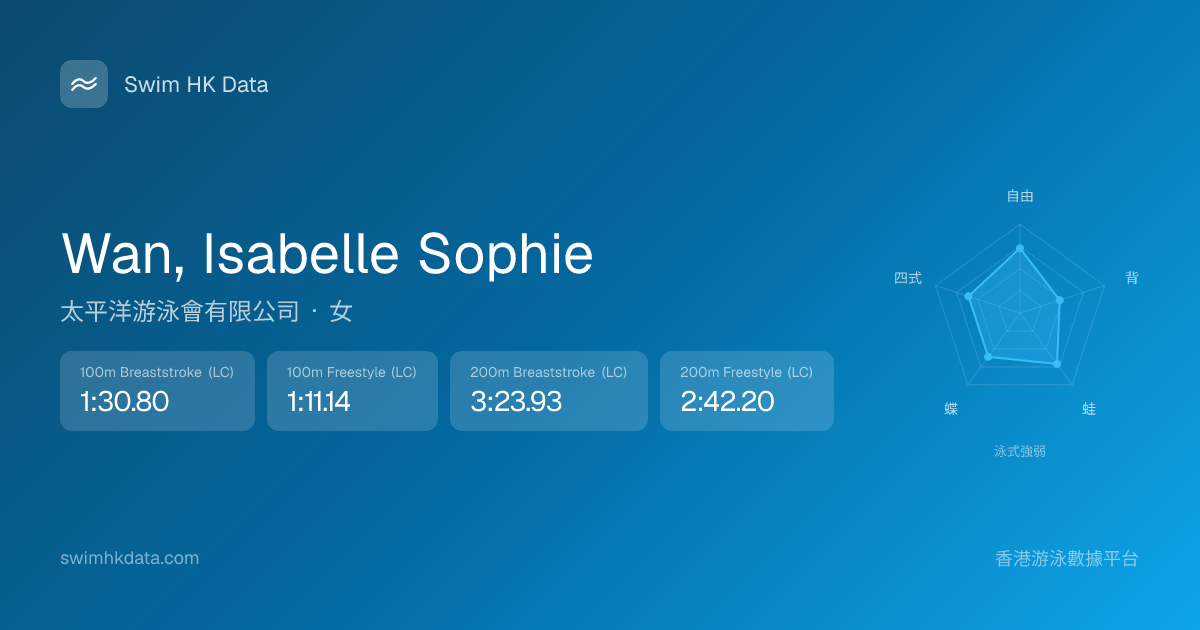 此圖表根據你所有比賽成績計算,顯示你在各泳式的相對強弱,僅供參考。繼續努力,每一次練習都會讓你更快更強!💪