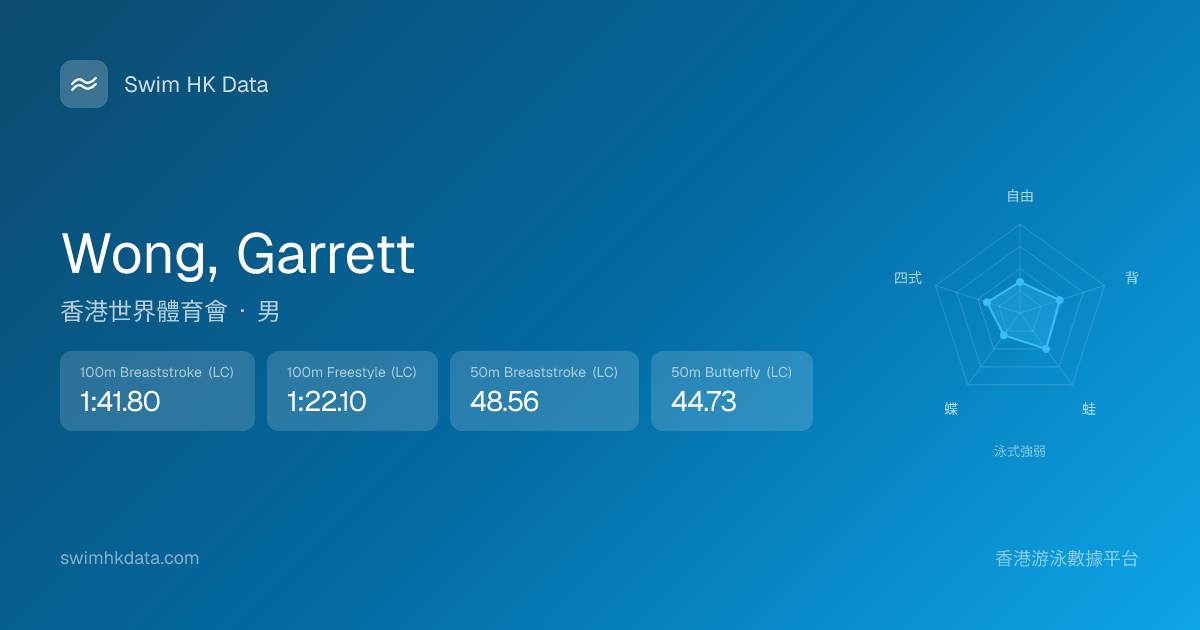 此圖表根據你所有比賽成績計算,顯示你在各泳式的相對強弱,僅供參考。繼續努力,每一次練習都會讓你更快更強!💪