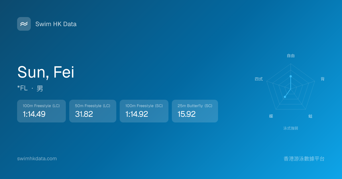 此圖表根據你所有比賽成績計算,顯示你在各泳式的相對強弱,僅供參考。繼續努力,每一次練習都會讓你更快更強!💪