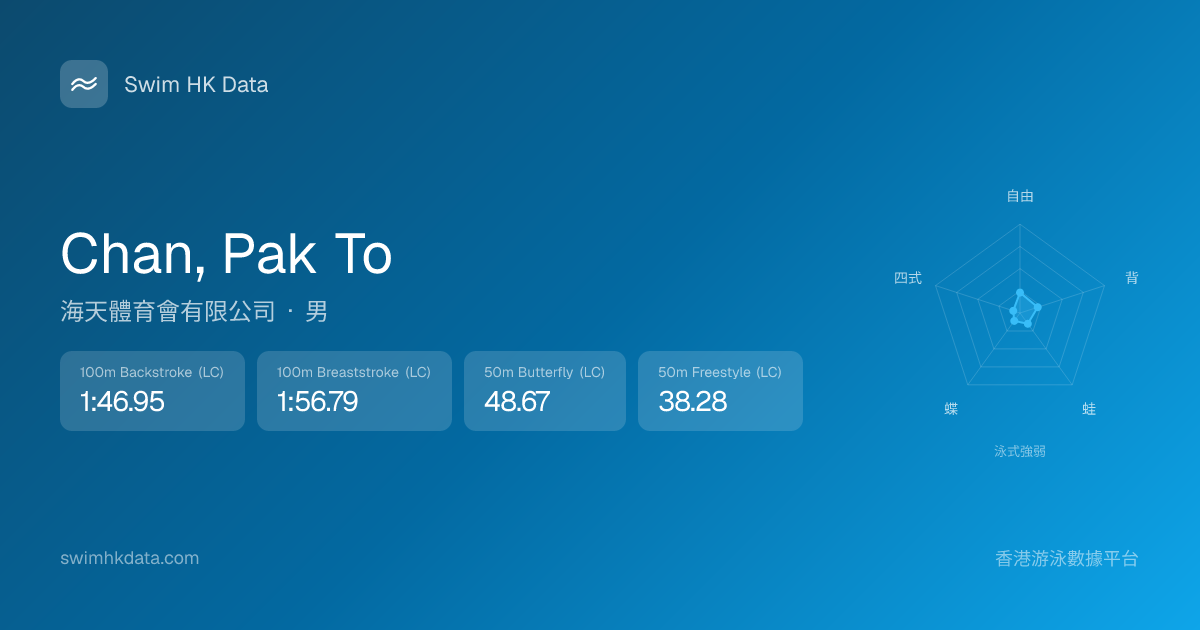 此圖表根據你所有比賽成績計算,顯示你在各泳式的相對強弱,僅供參考。繼續努力,每一次練習都會讓你更快更強!💪