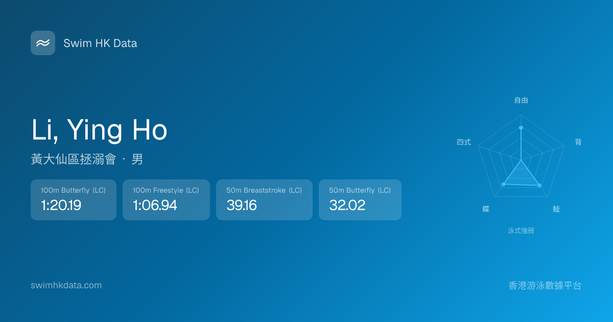 此圖表根據你所有比賽成績計算,顯示你在各泳式的相對強弱,僅供參考。繼續努力,每一次練習都會讓你更快更強!💪