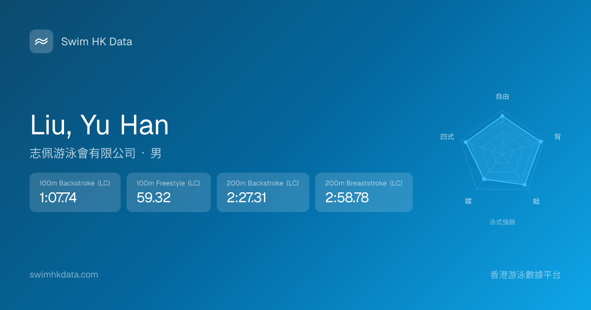 此圖表根據你所有比賽成績計算,顯示你在各泳式的相對強弱,僅供參考。繼續努力,每一次練習都會讓你更快更強!💪