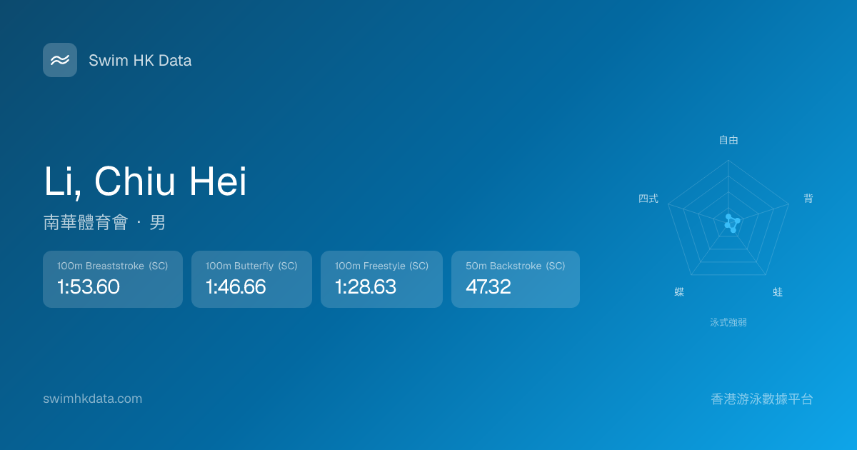 此圖表根據你所有比賽成績計算,顯示你在各泳式的相對強弱,僅供參考。繼續努力,每一次練習都會讓你更快更強!💪