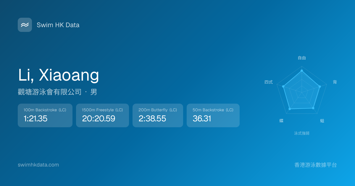 此圖表根據你所有比賽成績計算,顯示你在各泳式的相對強弱,僅供參考。繼續努力,每一次練習都會讓你更快更強!💪