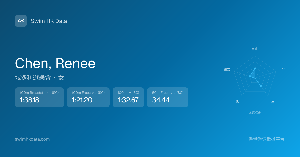 此圖表根據你所有比賽成績計算,顯示你在各泳式的相對強弱,僅供參考。繼續努力,每一次練習都會讓你更快更強!💪