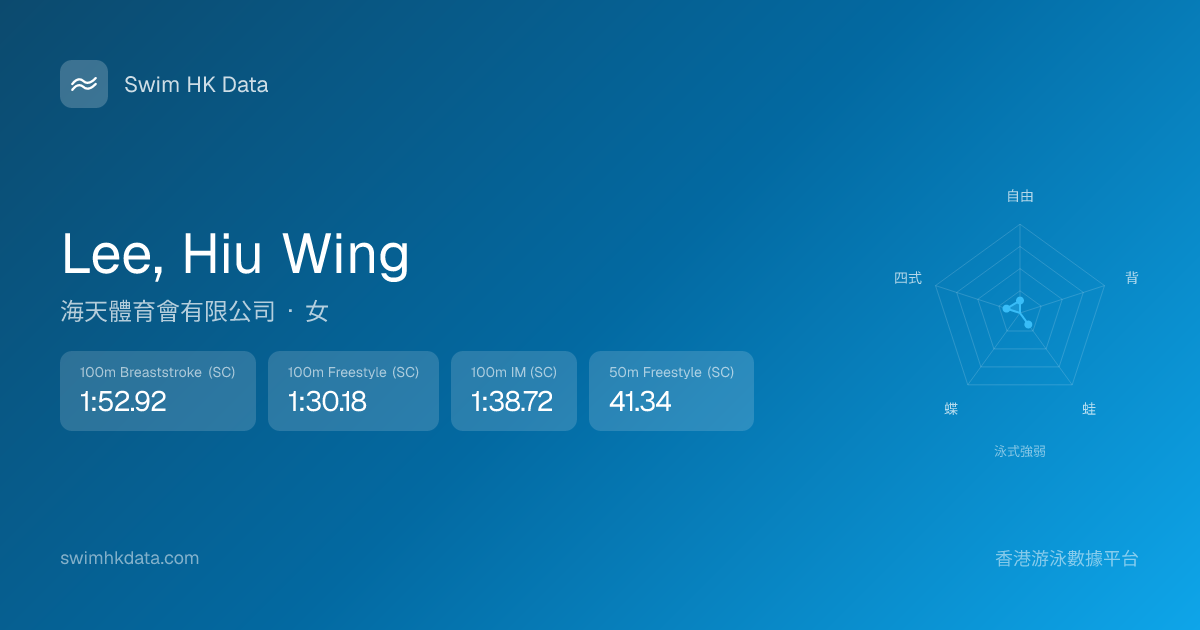 此圖表根據你所有比賽成績計算,顯示你在各泳式的相對強弱,僅供參考。繼續努力,每一次練習都會讓你更快更強!💪