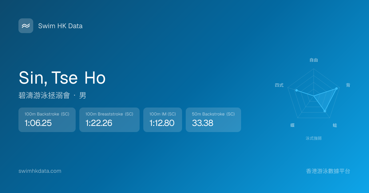 此圖表根據你所有比賽成績計算,顯示你在各泳式的相對強弱,僅供參考。繼續努力,每一次練習都會讓你更快更強!💪