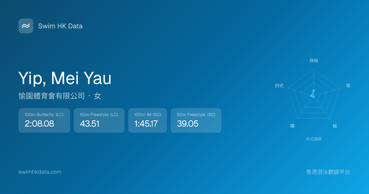 此圖表根據你所有比賽成績計算,顯示你在各泳式的相對強弱,僅供參考。繼續努力,每一次練習都會讓你更快更強!💪