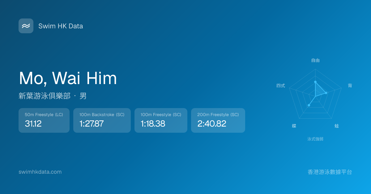 此圖表根據你所有比賽成績計算,顯示你在各泳式的相對強弱,僅供參考。繼續努力,每一次練習都會讓你更快更強!💪