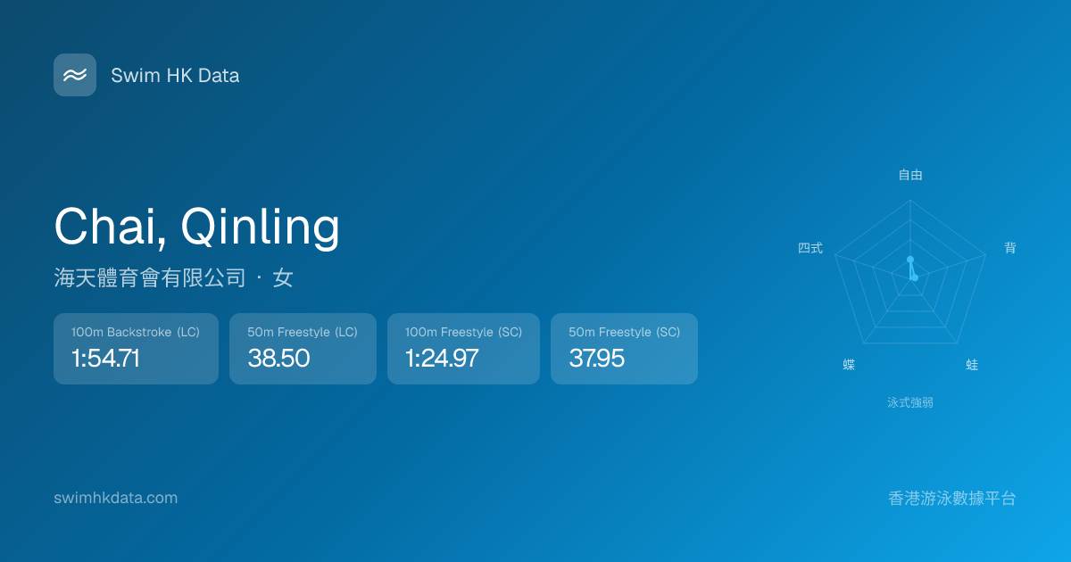 此圖表根據你所有比賽成績計算,顯示你在各泳式的相對強弱,僅供參考。繼續努力,每一次練習都會讓你更快更強!💪