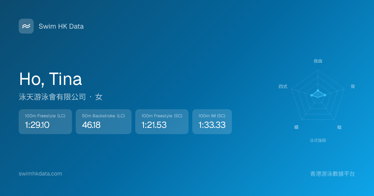此圖表根據你所有比賽成績計算,顯示你在各泳式的相對強弱,僅供參考。繼續努力,每一次練習都會讓你更快更強!💪