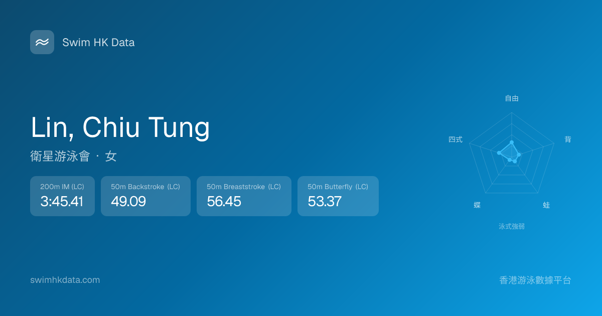 此圖表根據你所有比賽成績計算,顯示你在各泳式的相對強弱,僅供參考。繼續努力,每一次練習都會讓你更快更強!💪