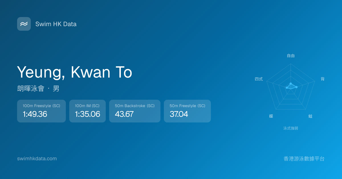 此圖表根據你所有比賽成績計算,顯示你在各泳式的相對強弱,僅供參考。繼續努力,每一次練習都會讓你更快更強!💪